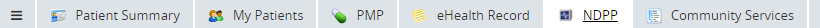 At the top of the "Patient Summary" view, the "NDPP" tab may provide additional measurement information pertaining to the National Diabetes Prevention Program (NDPP) for the selected patient. The section was developed in collaboration with the Maine Centers for Disease Control and Prevention (Maine CDC) and the Office of MaineCare Services (OMS).