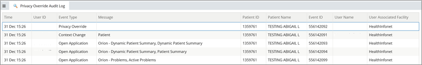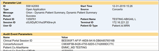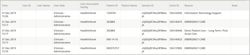 By selecting an individual record in the initial audit report, Auditor users will be brought to a more detailed log displaying all related views and functions that the selected user engaged in when viewing the selected patient's record.