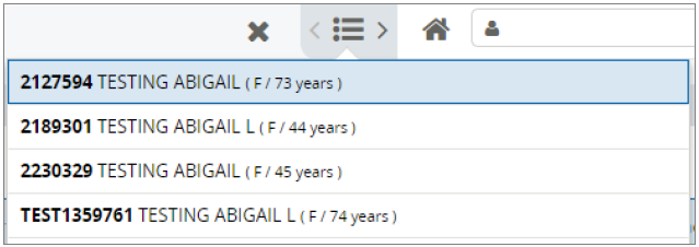 While viewing a particular patient's information, users can easily toggle to other patients that met their initial demographic search criteria in the event that a selected record does not correspond to the patient of interest.
