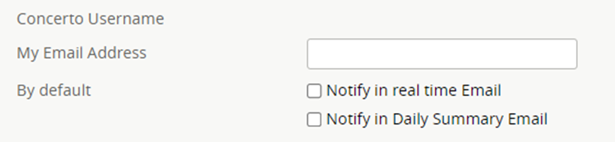 Upon selecting this option, users will be brought to a module where they can configure their notification subscription preferences. To start, users should confirm their email address and default email preferences – that is, to either have the system notify them of events in real-time or in a daily summary capturing all applicable alerts for the past 24 hours.